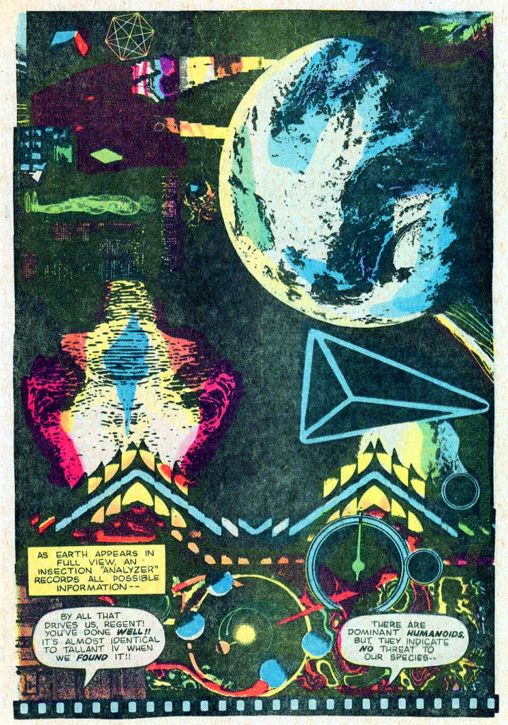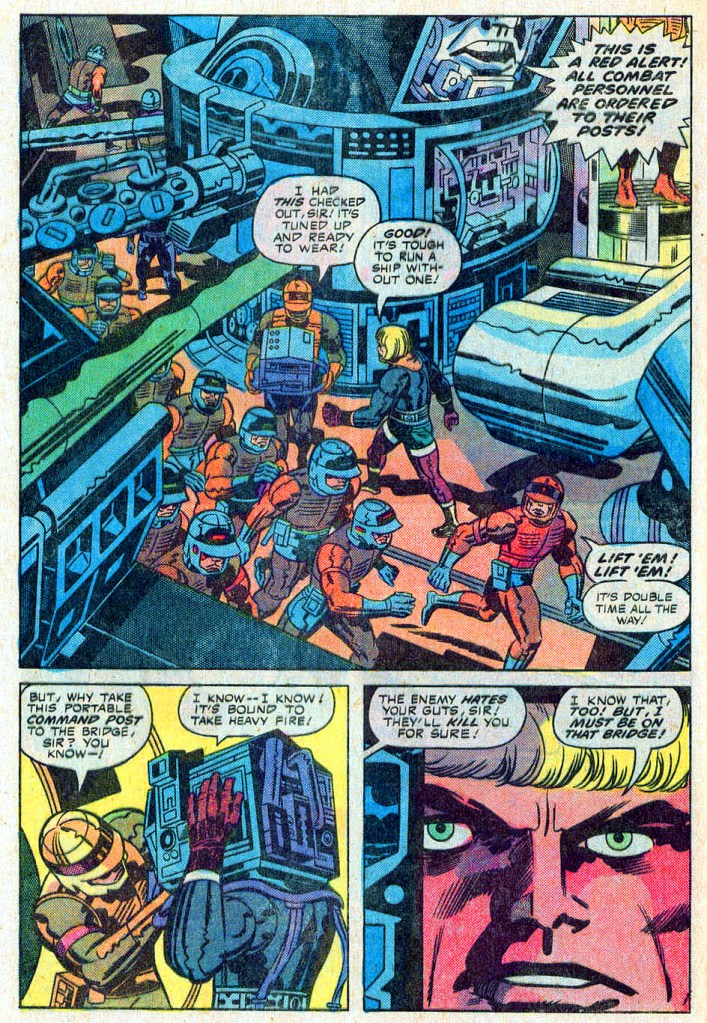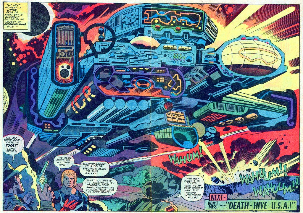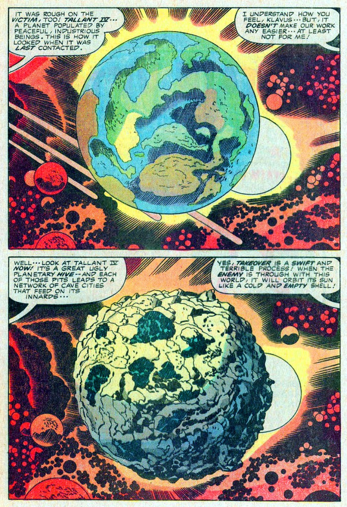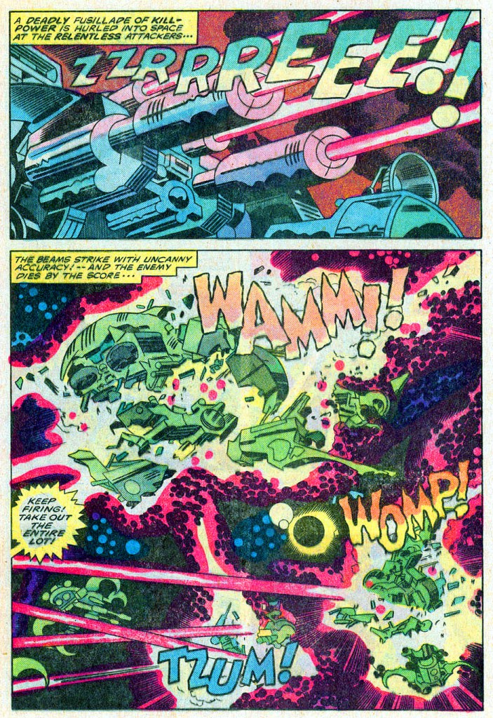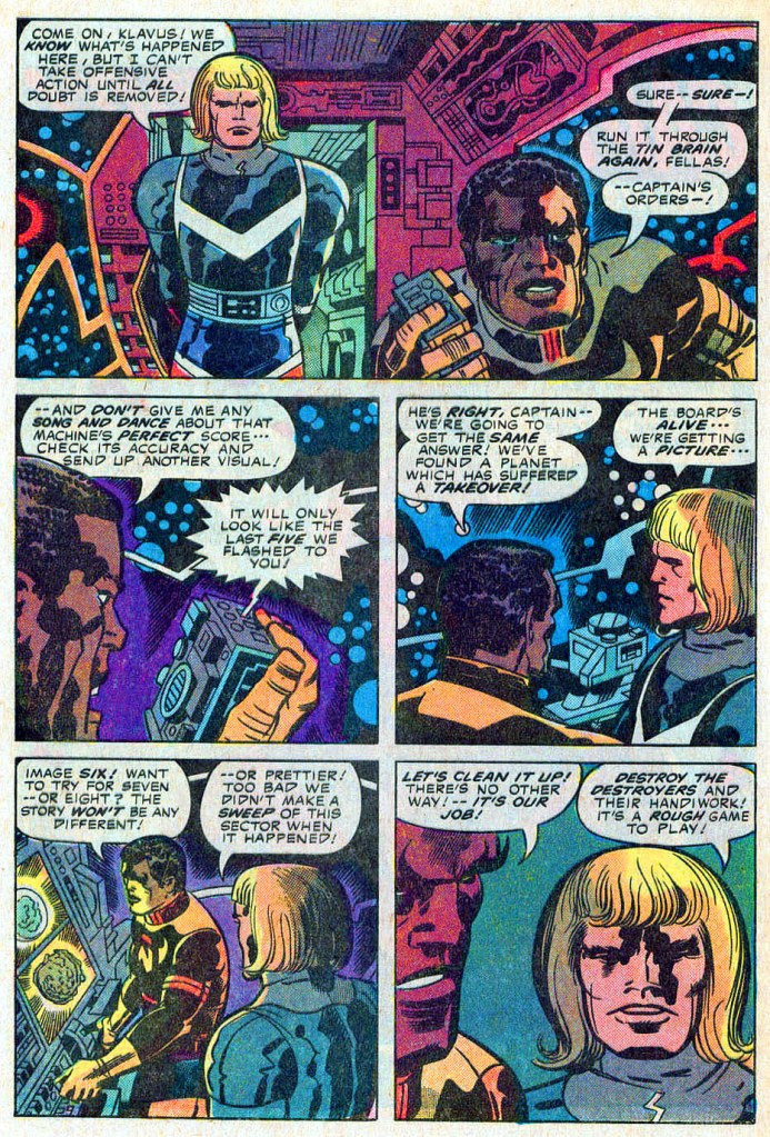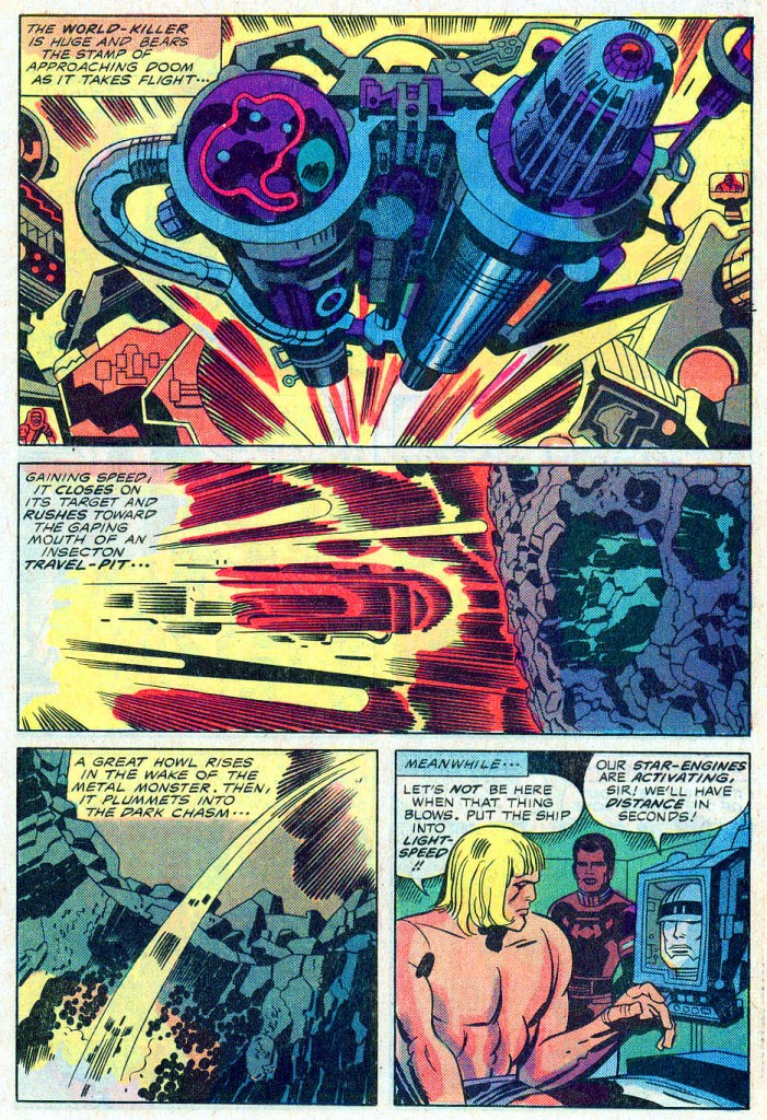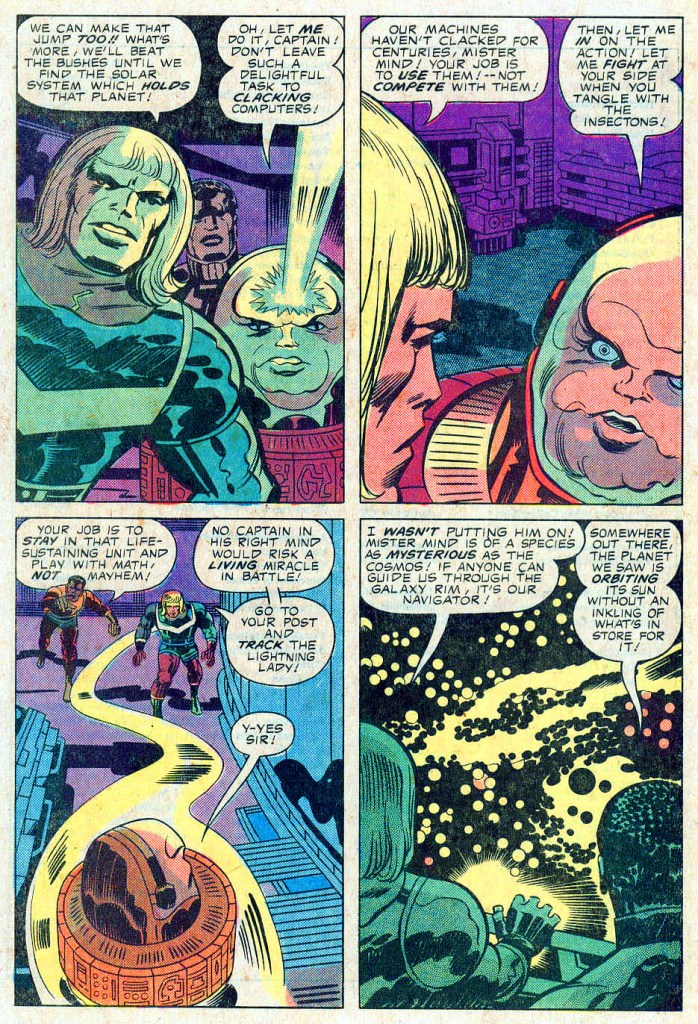 As with much of his work in the 1970s, on the surface CAPTAIN VICTORY looked like a super hero series. But it wasn’t, not really. Nor was it, strictly speaking, science fiction, though it contained a liberal use of super-science and far-out technology. But really, when you looked under the hood, CAPTAIN VICTORY was really a war comic, depicting the struggle between the Galactic Rangers, sentinels of civilization throughout the cosmos, and their enemies the Insectons, who would infest a planet and consume it from within. Earth was the setting for this intergalactic war (much as it had been during Kirby’s NEW GODS saga) but the terms and the turf were interplanetary.