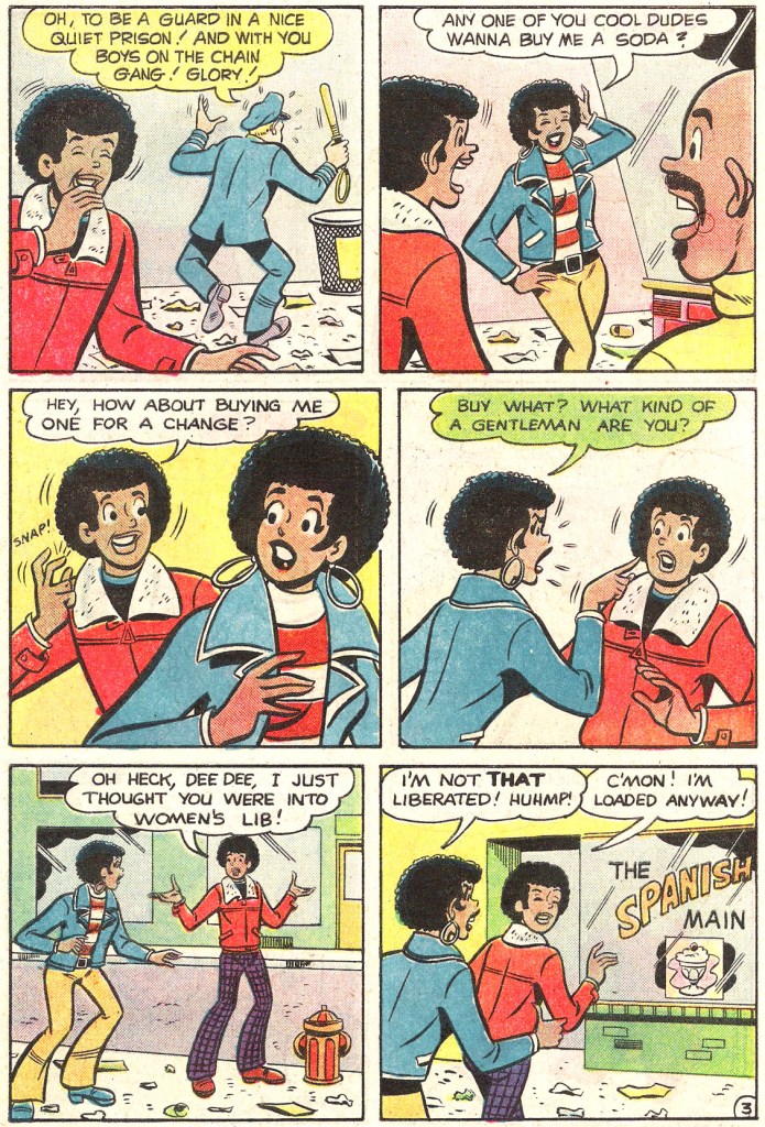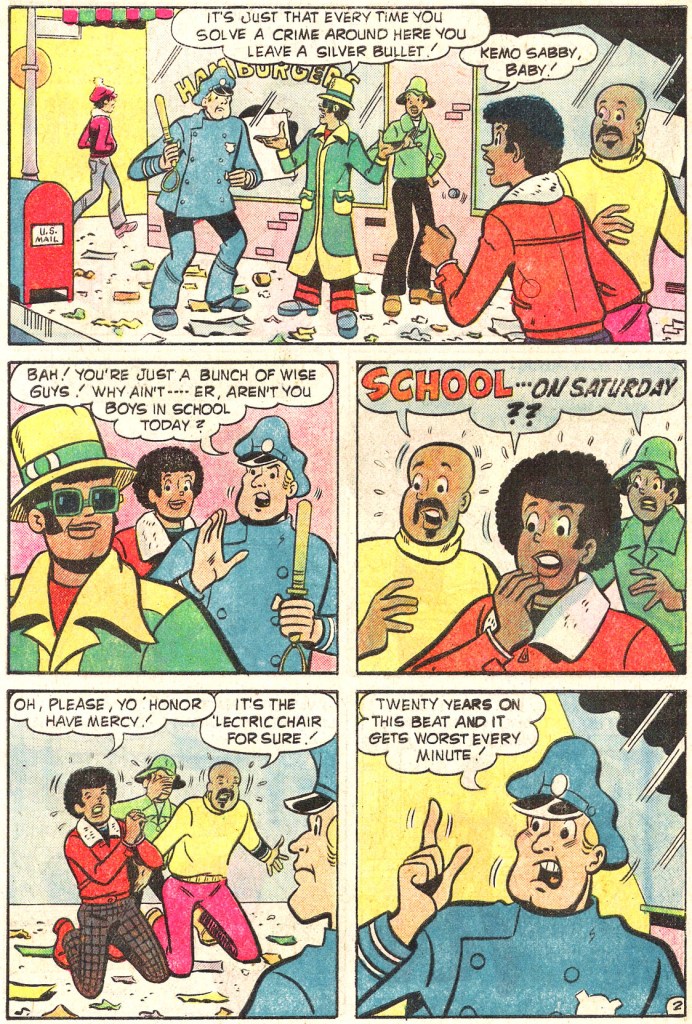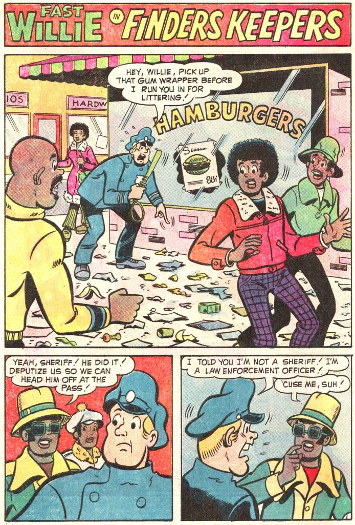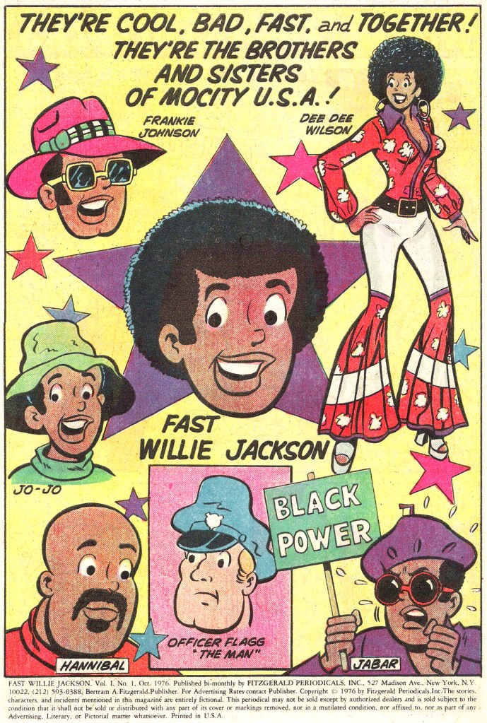 That year, Fitzgerald brought out the first issue of FAST WILLIE JACKSON. It was a teen humor comic very much in the mold of the popular ARCHIE titles, but one featuring an almost entirely black and minority cast. It was a noble experiment, but one that didn’t catch on well enough with the public, and so only lasted seven issues.