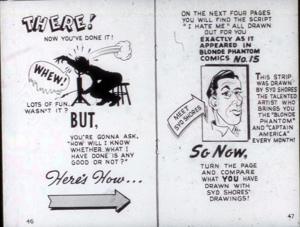 Alan Sulman isn’t terribly well remembered these days. So it’s nice to have these names and caricatures. It’s also nice to see what a script looked like at Timely in 1947.