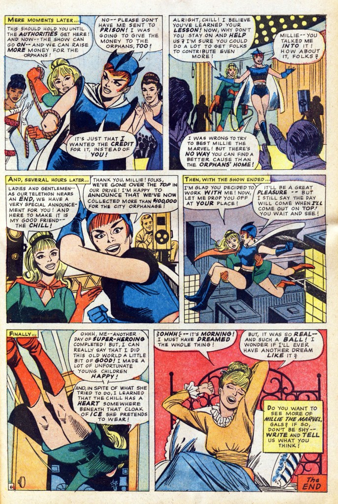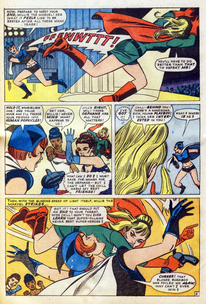 The action in this sequence is framed rather ineptly. We never do truly get a good look at The Chill, and she and Millie the Marvel insist on being shown from behind for most of this sequence. If you like looking at the backs of heads, this is the Marvel adventure for you, True Believer!