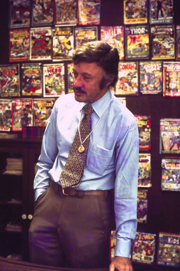 Stan Lee circa 1979. When I started at Marvel ten years later, there were still stacks of this photo lying around the place–it was typically used whenever Stan wanted to send out an autographed picture.Stan Lee and some fans on the street in the late 1960s.Dr. Frederick Wertham, the great boogeyman of the 1950s Comic Book Witch Hunts.A younger, balder Stan Lee with fans circa 1966 or so.Stan Lee in his office, circa 1970. Sorry for the proliferation of Stan Lee pics in tis first installment, but he was probably the most photographed comic book creator of the era.John Verpoorten in the Marvel offices, circa 1971Stan Lee and John Romita, promotional shot circa 1973“Groovy” Stan Lee circa 1972John Byrne, circa 1984John Severin, backdropped by assorted titles he worked on.Young John Byrne, early-mid 1970s.L-R: Fabian Nicieza, Stan Lee, Scot Lobdell, Bob Harras at the Marvel Convention Booth circa 1992 or soSteve Gerber at work.Stan Lee with young cosplayers, late 1970sChris Claremont and Stan Lee relax at a convention circa 1980Jack Kirby, promotional photograph for Toys for Tots campaign, 1969Jack KirbyBill Everett, creator of the Sub-MarinerSteve Ditko in his studio, circa 1961Joe Kubert and a very young Andy KubertDave Sim and friend at a signing, mid-1980sStan Lee and Jim Shooter, promotional photo, 1978