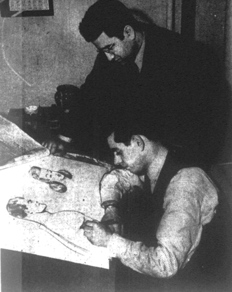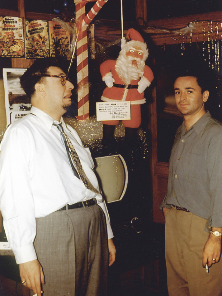 Max’s son Bill Gaines took over the publishing business after Max passed away, and inaugurated the memorable EC line of titles. He’s seen on the left here at an EC Christmas party–that’s Al Feldstein on the right. Circa 1953.