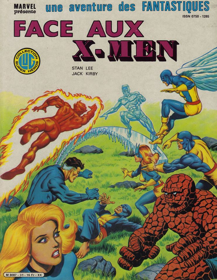 Couldn’t resist sharing another French FANTASTIQUES album cover, this one featuring the team in combat with the X-Men. The expression on the Thing’s face here is pretty priceless. He’s not having any of it.
