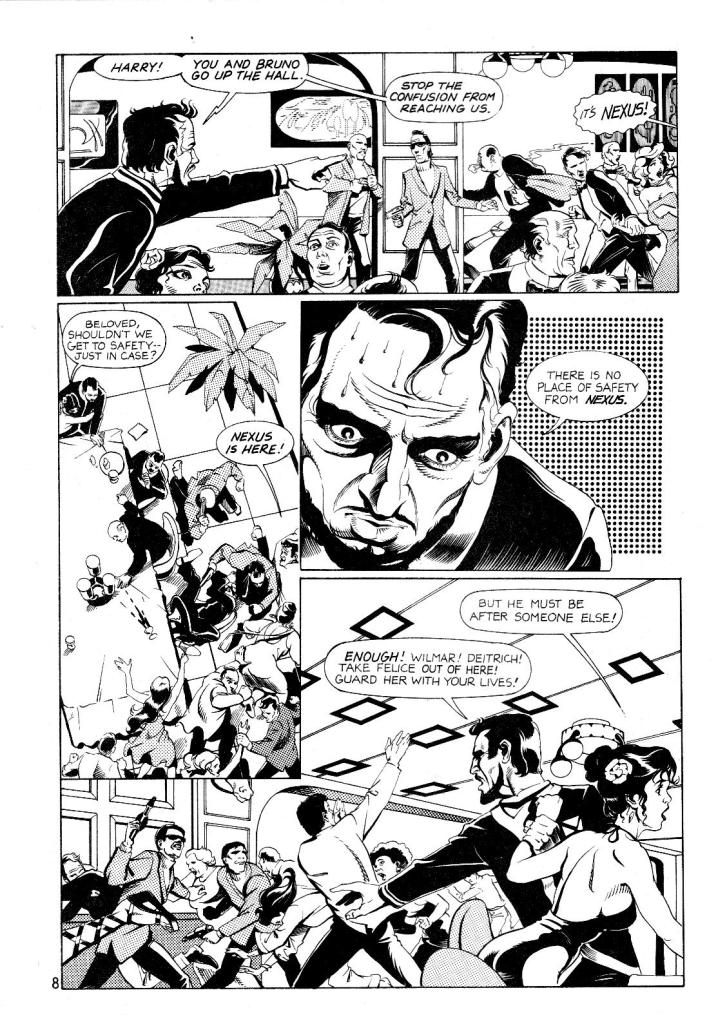 But only a short time later, NEXUS found a new home at another start-up entity, First Comics. First had made an aggressive entry into the marketplace, determined to become at least the #3 publisher in the industry, and backed up by a bevy of talent as well as some solid financing. They made arrangements with Capital to take over their titles, and so NEXUS and THE BADGER shifted over to First’s line. (First had earlier done this same thing with Mike Grell’s STARSLAYER, although in that case they did so by giving Grell better terms than he had been getting from his first publisher, Pacific Comics.)
