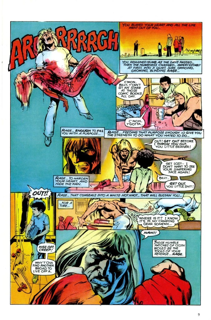 Unfortunately, the desire for better paper stock and the desire for better color separations wound up smacking into one another on SKATE MAN. Neal and his Continuity Studios team did full painted color on the book, but the better paper stock didn’t absorb the ink as much as standard newsprint would have. The end result is that the garish coloring job is even louder and more eye-splitting than it might otherwise have been. SKATE MAN practically glowed in the dark, so intense were some of the colors in the book. You couldn’t look at it directly, only out of the corner of your eye.