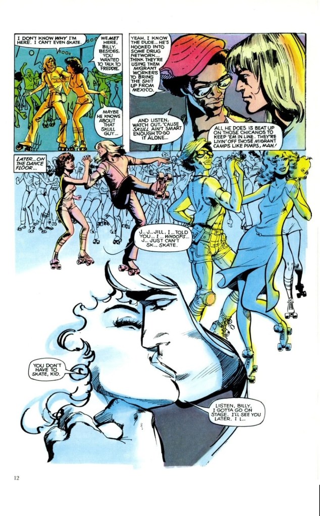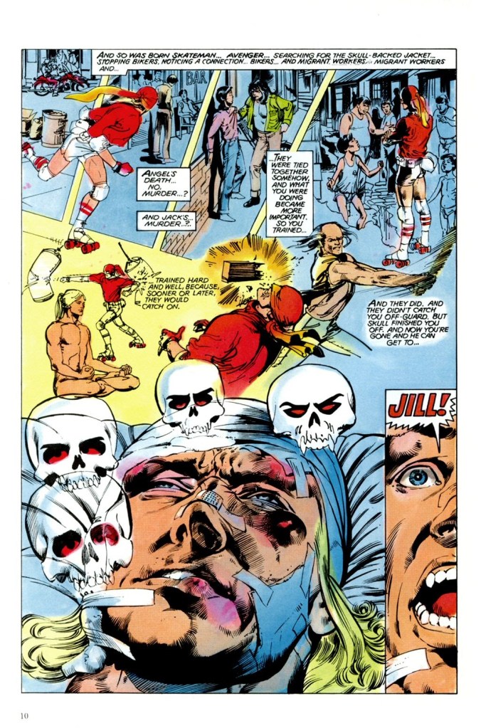 If anything, the book plays out like a television movie of the week. The lead character, Billy, is driven to put on a mask and do battle with bikers after his girlfriend Angel is killed by those same bikers in retaliation for the articles she’s been writing about them in the local weekly paper. As Skateman, Billy ambles around on a pair of roller skates–not exactly equipment conducive to being in a fight. But, hey, I’m not a martial arts roller derby champion–you do you, Billy!