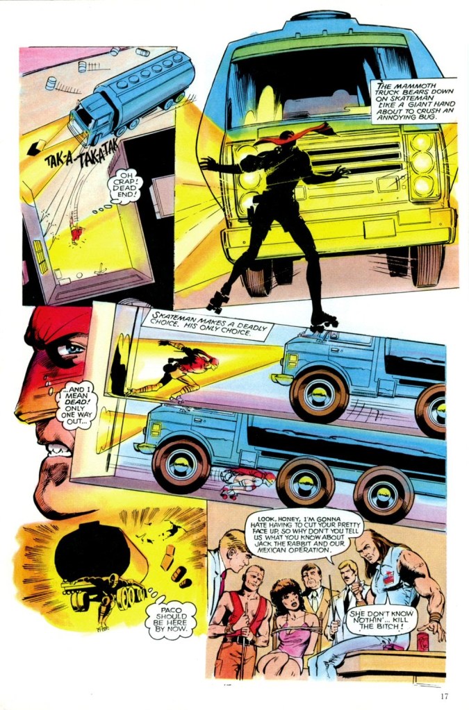 SKATE MAN achieved a certain notoriety as one of the worst comic books ever published. Which is really a bit unfair. Yes, it’s overwrought and a bit silly, and yes, the coloring and printing sometimes makes it difficult to look at. But the actual drawing is solid throughout and the intention of creating a more plausible super hero archetype is a laudable one, for all that the end result missed the mark.