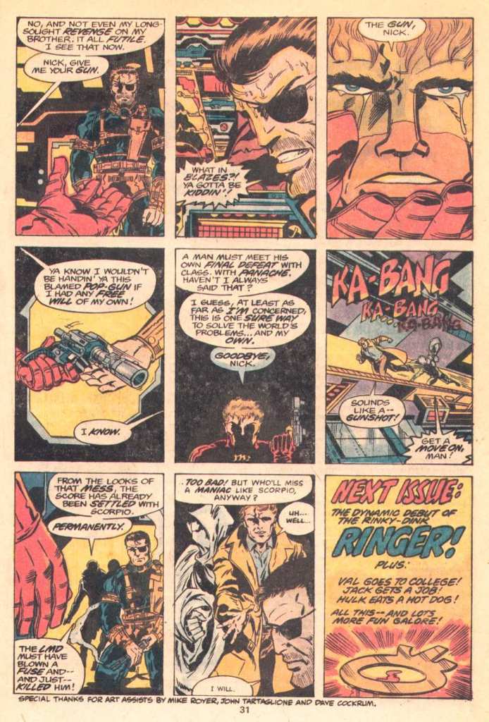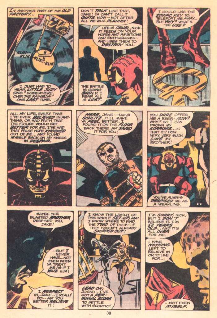 One of my all time favorite stories. DAK surpassed Gerber in my opinion with the pathos of Scorpio. I can relate even more now in my fifties than I could as a teenager. Don’t think I picked up on the homosexual subtext either but I definitely knew what it was not to live up to an older brother. Ironically enough this is one of the last great Nick Fury stories and he’s an LMD. Giffen’s art made me appreciate Kirby even more.