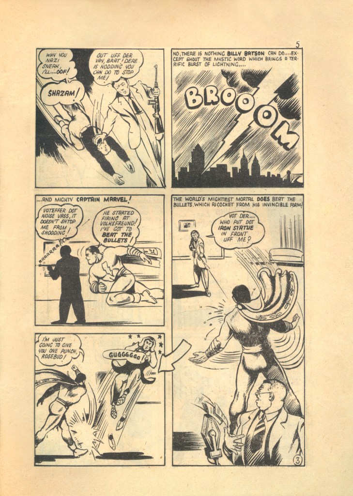 The script itself, like more than 50% of the Marvel Family adventures penned during the Golden Age of Comics, had been written by Otto Binder. It’s unlikely that Binder saw any financial remuneration from having his work repurposed across national lines, though it’s not absolutely impossible that Fawcett slipped him a few dollars as part of the deal.