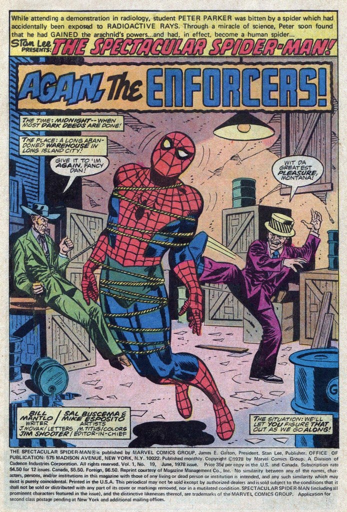 Another Thursday meant another trip to my regular 7-11 hangout for new comic books, plus possibly a Clark bar or maybe even a Slurpee. I had fallen into following the adventures of the wall-crawler, and so I picked up this new issue of PETER PARKER, THE SPECTACULAR SPIDER-MAN when I saw it. I recognized the Enforcers from an issue of MARVEL TEAM-UP that I had read, and the Ernie Chan cover was pretty strong. Though it’s interesting to see how, during this period, Spidey was drawn as a much more massive and muscular character than we typically think of him as being. I suppose this was what the times called for, but I was always more partial to a more wiry, almost creepy kind of Spider-Man.