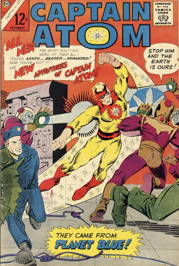 Consequently, the stars aligned perfectly for Ditko to return to the character he had helped to launch a number of years earlier. It’s unclear who may have reached out to who–I tend to think that Charlton must have contacted Ditko as their supply of reprints was running out, but it could just as easily have been Ditko resuming contact with Charlton and looking for work to get his eggs out from all being in the Marvel basket. However it happened, STRANGE SUSPENSE STORIES was retitled CAPTAIN ATOM with issue #78, and Ditko along with writer Joe Gill produced their first Captain Atom story in years.