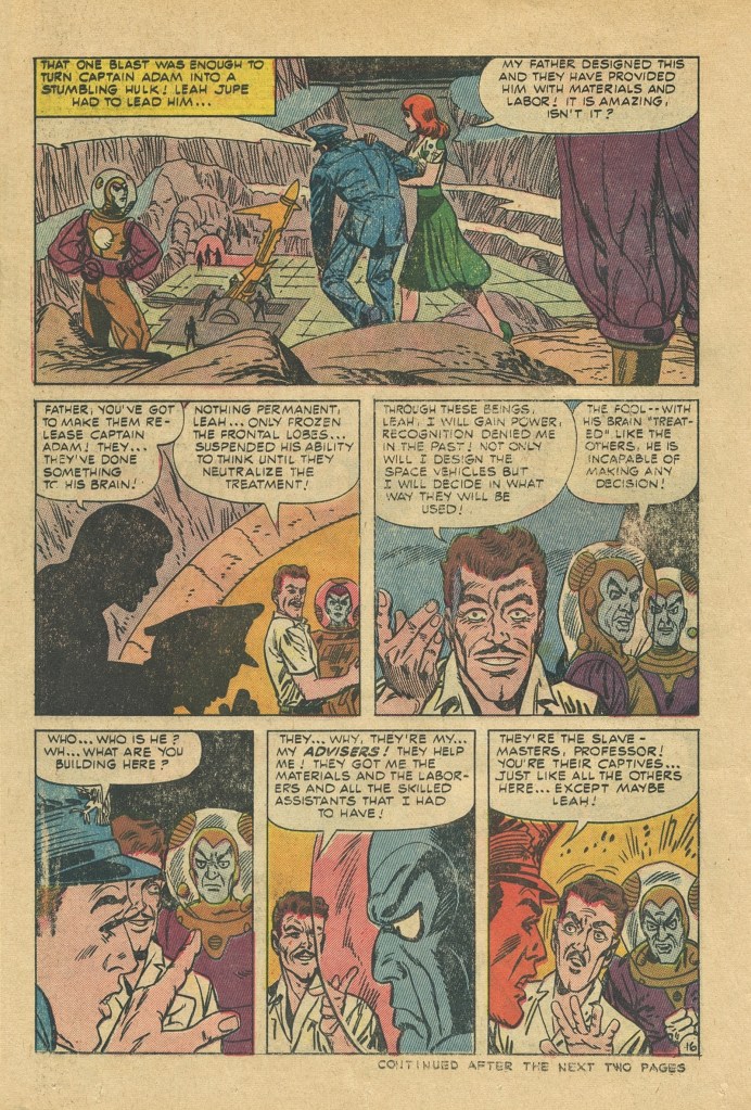 Somebody, though, possibly editor Pat Masuli, was paying enough attention to Marvel to quasi-ape Stan Lee’s style of credits on the first page, albeit in a wordier and not all that amusing fashion. But even that was a bit of a change for Charlton, who didn’t routinely run credits on their titles. It’s clear that they were looking to tap into the energy that was making the Marvel books sell.