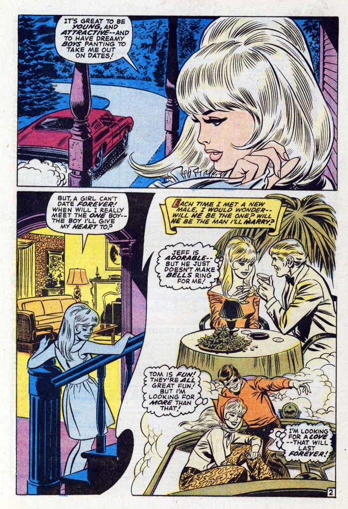 The story itself is dumb fluff, the same kind of romance tale that might have been written a decade or two earlier. There are a few hat-tips towards being contemporary, but no real thought has been put into what the potential female audience might be interesting in reading about as the tumultuous 1970s beckoned.