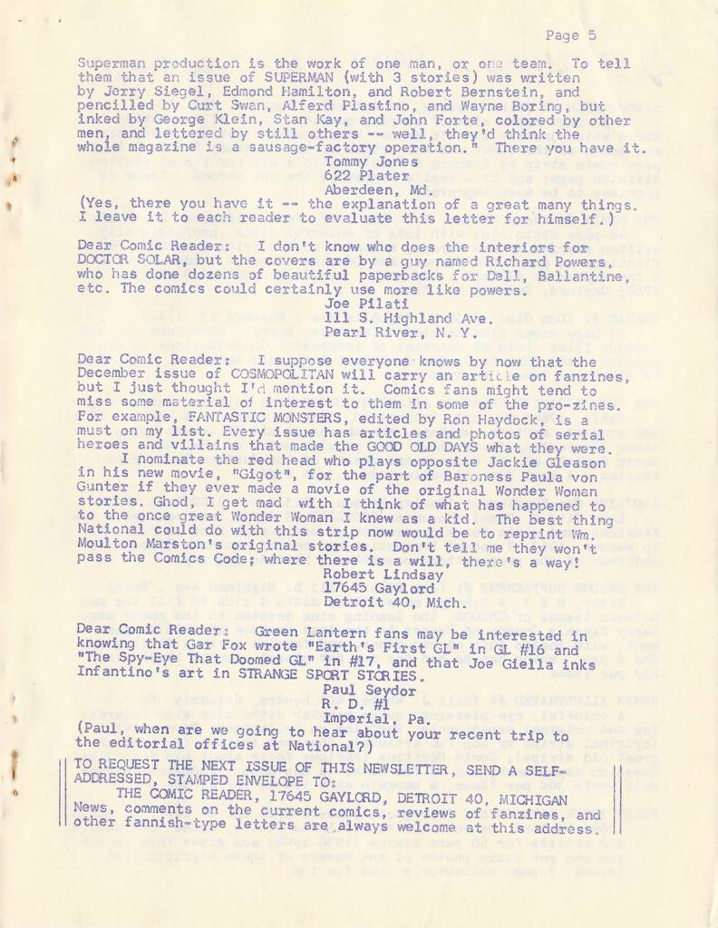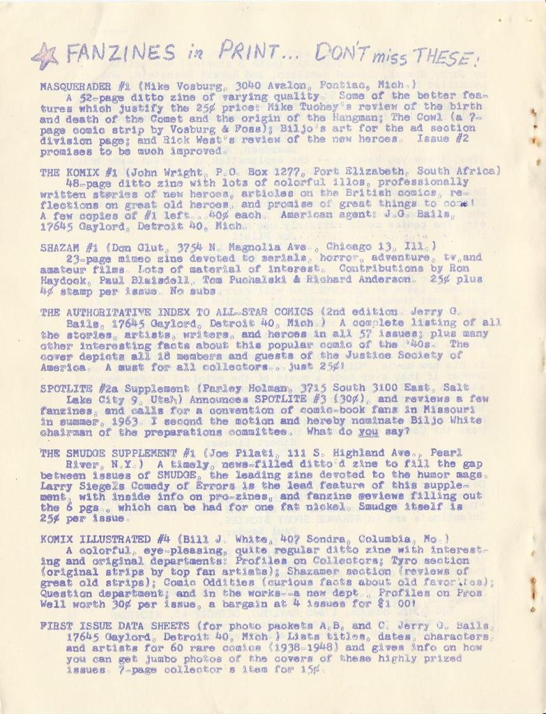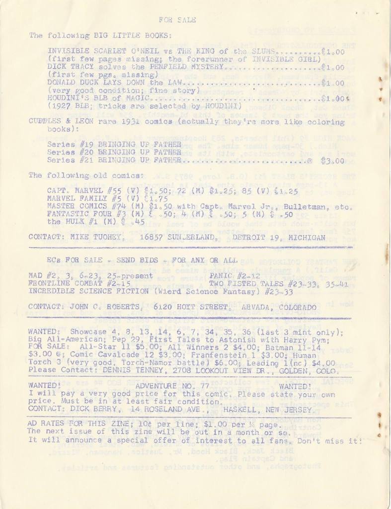 The fascination and intensity-of-interest of the early fanzine creators is impressive. To behold it, one is reminded of ancient scientists searching for the alchemy to turn lead into gold. The fanzine creator’s “gold” is the new issues they chronicle with loving care every month.