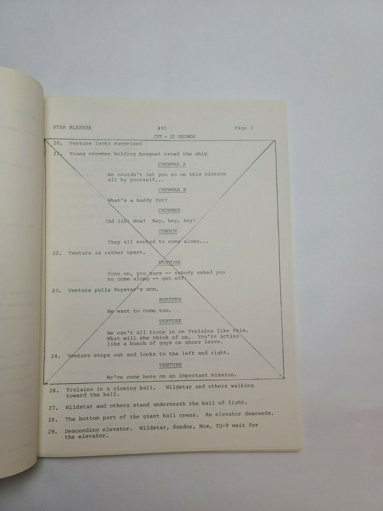 Recently, Eldred was able to bid on and win on an almost complete set of the original dialogue scripts for STAR BLAZERS season two. He’s going to be posting them in their entirety over at that site two at a time, with the first two available in full now. The specific page is here: https://ourstarblazers.com/vault/548a/