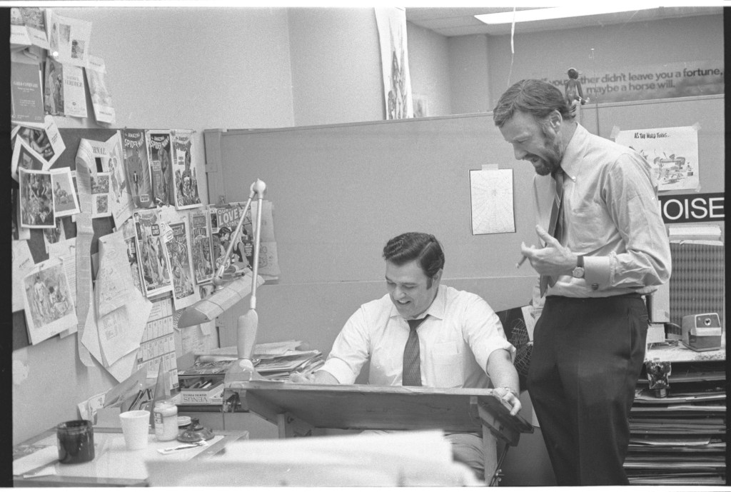 Stan Lee with presentation board, circa 1976John Romita, early 1970sJohn Romita and Stan Lee, circa 1970Herb Trimpe, circa 1972Mark Gruenwald at home, circa 1994Not 100% certain who this is in the Marvel offices with Stan Lee, circa 1970. Possibly Tony MortellaroMary Jo Duffy, mid-1970s.Roy Thomas at a convention circa 1977Stan Lee and Jim Shooter, promotional photo circa 1979John Romita, mid-1970sJoe Maneely and Stan Lee, circa 1957Stan Lee, circa 1970Stan Lee in his Marvel office circa 1970Flo Steinberg, Marie Severin, Herb Trimpe and Linda Fite, early 2000sFlo Steinberg and Barry Smith, early 1970sRalph Macchio, Flo Steinberg and Stan Lee, convention appearance, early 2000sTom DeFalco, circa 1985Mike Sekowsky and model in the DC offices circa 1969Marvel convention panel mid-1980s. Panelists include John Romita, Paul Smith, Bill Sienkiewicz, Jim Shooter, Tom DeFalco, among othersMark Gruenwald at Marvel, circa 1993