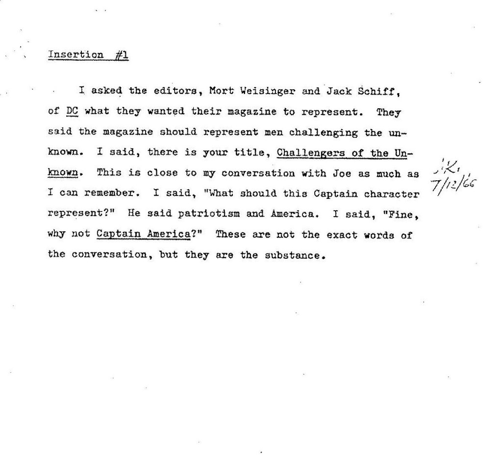 That testimony is a matter of public record, though. So here is Jack Kirby’s testimony on the question of creating Captain America in 1941: