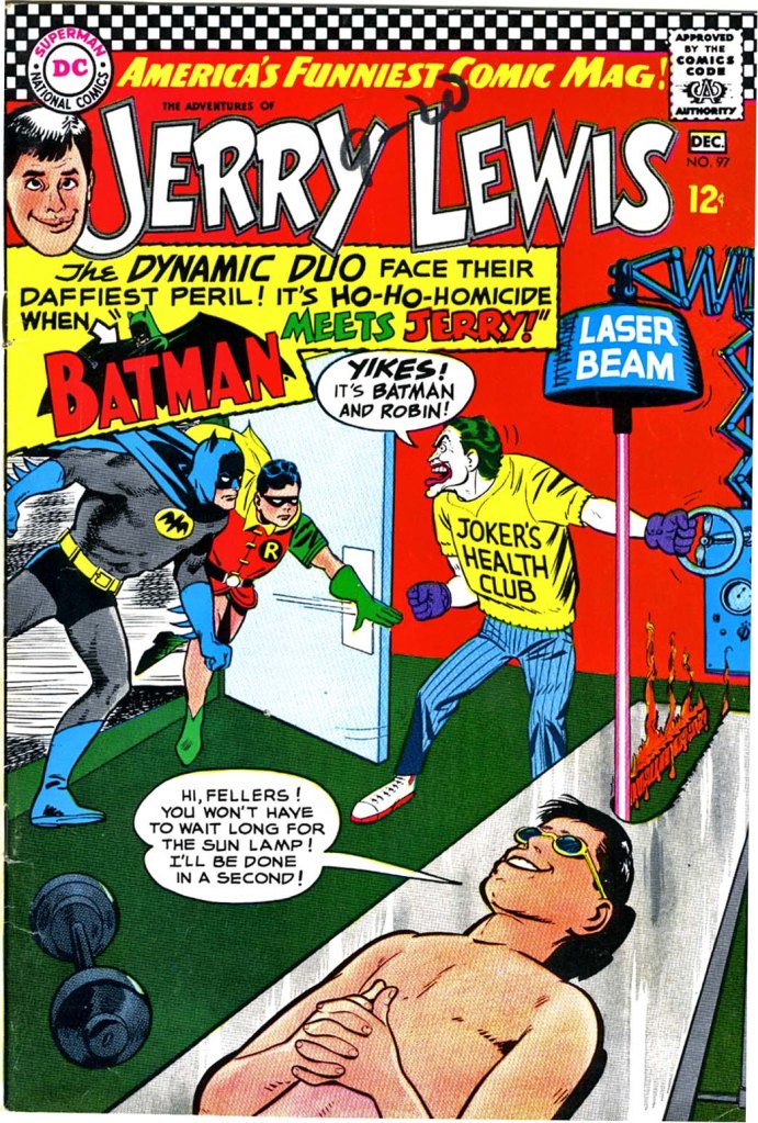 It’s somewhat difficult to believe today, but comedian and movie star Jerry Lewis headlined his own DC comic book for about twenty years, the first half-dozen in conjunction with his then-partner, Dean Martin. Amazingly, more copies of Jerry Lewis were being sold and consumed than of the Atom or Hawkman or the Doom Patrol, all of whom lost their titles in the late 1960s while the master of mirth continued ever-onward. Famously, in its final years, the JERRY LEWIS comic would occasionally take forays into the mainstream DC universe (or at least close to it) allowing its title star and his cast to interact with the most popular DC heroes of the day. There were four such stories produced over a period of as many years, and we’ll cover them all here eventually. So let’s start with the first one.