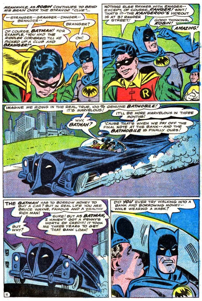 Apparently, editor Murray Boltinoff hadn’t been paying too much attention to either the show or the comics helmed by fellow editor Julie Schwartz, as he depicts Batman and Robin driving around in the vintage Batmobile they used during teh 1950s rather than teh sportier models that had been in use since teh Schwartz revamp in 1964.