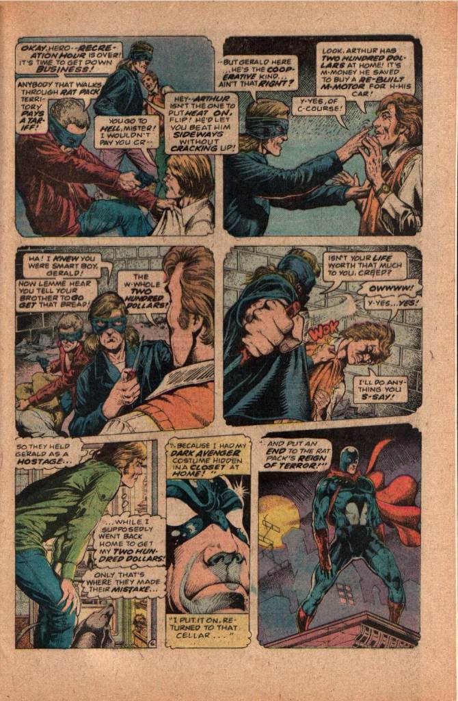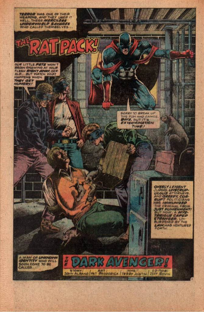 The Dark Avenger didn’t amount to much, only ever appearing in this single short story. so it’s a bit of a buried gem (and really only as noteworthy as the entertainment you get out of it.) The description, “So dumb, it’s fun!” comes to mind.