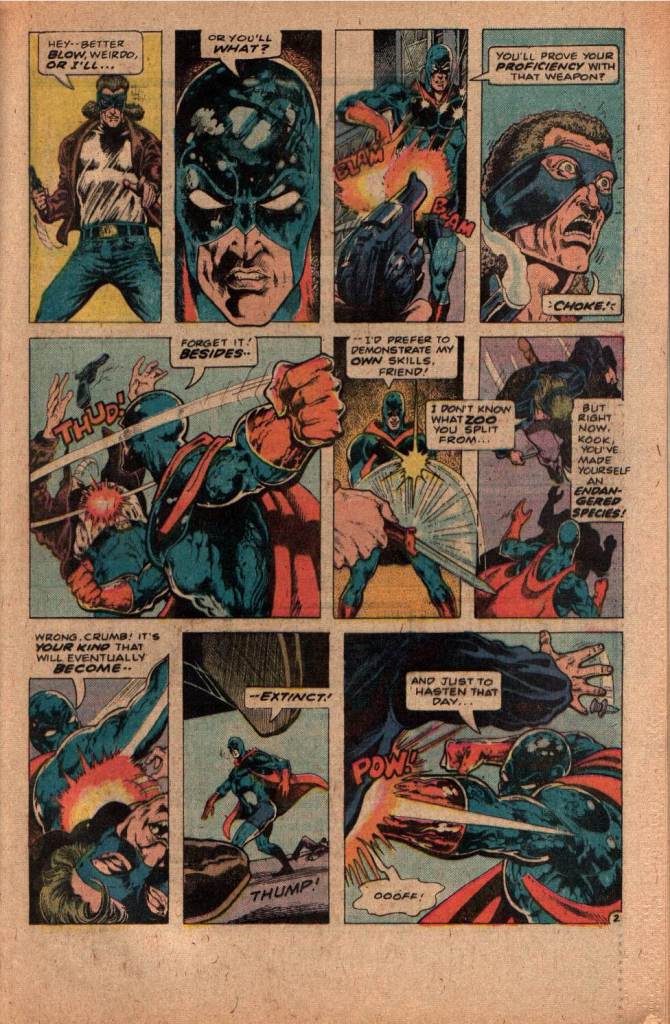 The Dark Avenger was the work of writer John Albano, who is probably best recalled as the originator of Jonah Hex over at DC. Albano wrote a ton of stories all across the field, but relatively few super hero stories. His approach to the character is a little bit dismissive, even as he exaggerates a number of the tropes that were typical of super hero stories of the time. The artwork was provided by a pair of relative newcomers to the field, Pat Broderick and Terry Austin. Both would go on to greater things, but even given their relative youth and inexperience, the Dark Avenger is one of the better looking stories in the Atlas Comics canon.