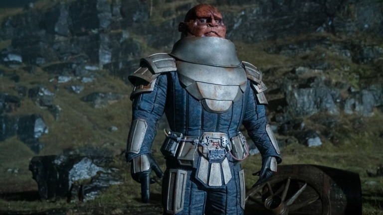 The best move here, honestly, was splitting up the cast. Left on her own, the Doctor almost had no choice but to take charge and take action, something that’s been sorely lacking during Jodie Whittaker’s tenure. Victory over the Sontarans in the Crimean War period was achieved a bit to easily and facilely–I need to buy into the idea that the Sontarans are all either dumb enough or unthreatened enough to all do their atmospheric refresh at the same time, rather than staggering those assignments so as to keep a guard force on stand-by. But at the very least, it was the Doctor’s direct actions which saved the day in that time period, so I’m chalking it up as a genuine win.