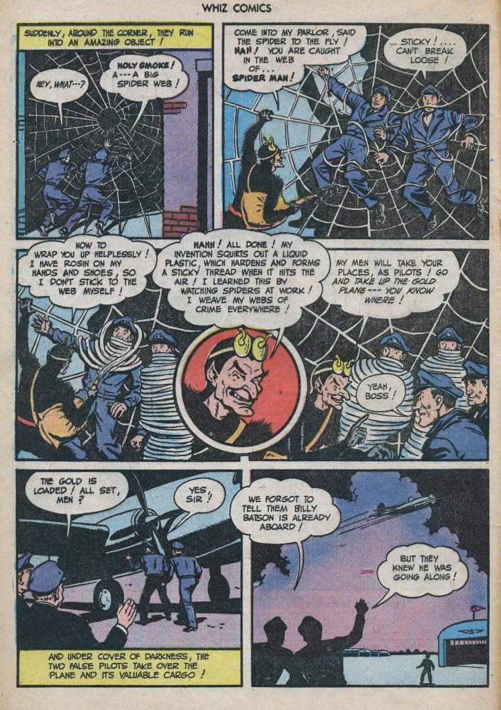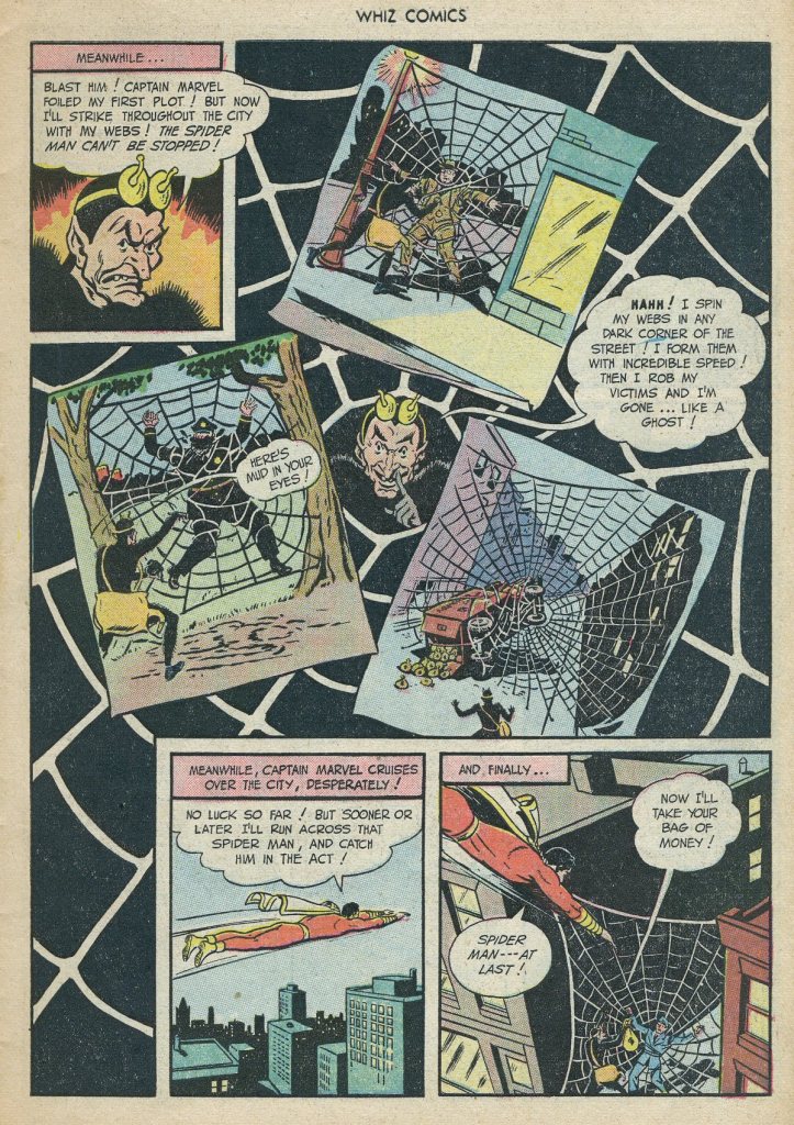 As we’ve covered in a number of different earlier posts, the chain of causality which led to the creation of the Amazing Spider-Man, Marvel Comics’ signature creation, is long and tangled. Every once in a while I see people make reference to this story in relation to it. And in fact, there isn’t any direct connection at all, apart from the fact that this obscure Captain Marvel adventure featured a villain called Spider Man, and it too was illustrated by C.C. Beck, who would work on the Silver Spider with Joe Simon and Jack Oleck years later. But it’s still interesting to look at.