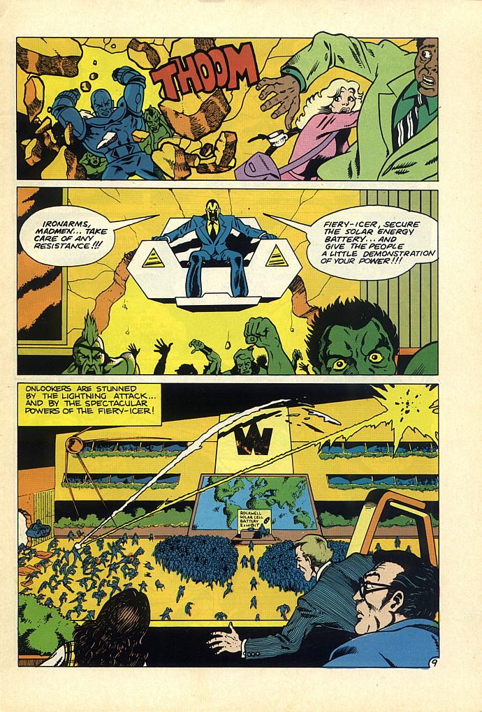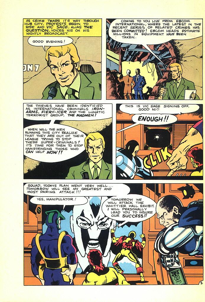 2. Nightshade uses some type of “shadow”/”darkforce” powers in this. And she would at DC in “Suicide Squad” (I preferred that purple & black suit Luke McDonnell drew her in). I don’t know if she had them @ Charleton. But her analog in Watchmen, Silk Spectre, didn’t. Maybe it was consistent with her Charltob version, or maybe Moore decided Dr. Manhattan would be the only character with super powers…