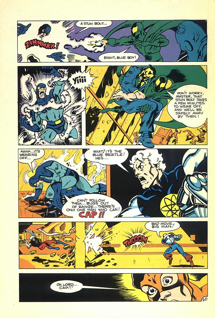 1. I actually had this. The dialog’s worse than I remembered. Cap even says “chew on this” twice. Maybe he was secretly hungry, but then we’d have read it in one of his thought balloons… I knew the old characters from price guides. I don’t remember if I got this before or after “Crisis”. But it was obvious the characters had changed ownership. The replacements joining Commando D… Captain Paragon? Flare. Nightveil? And I think the Scarlet Scorpion?
