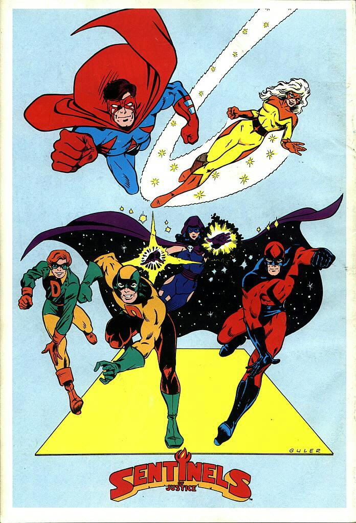 This single Sentinels of Justice story is credited to Dan St. John (who I would figure was a pseudonym for Dan Reed and others) with artwork by newcomer Greg Guler. Guler would become a pro a few years later, drawing the revived HAWK AND DOVE series, among other things. Background inks were provided by Matt Feazell, whose Cynicalman was a bit of an underground star in the small press/minicomic arena.