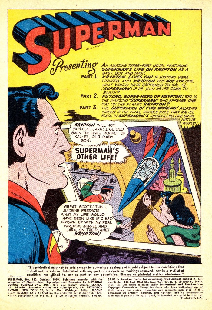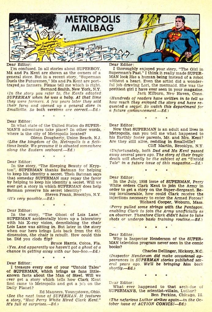 1958-9 saw a real spurt of new creativity in Superman and some of DC’s other titles. I blogged about it over at the Atomic Junkshop: http://atomicjunkshop.com/there-must-have-been-something-in-the-water-or-maybe-the-ink/