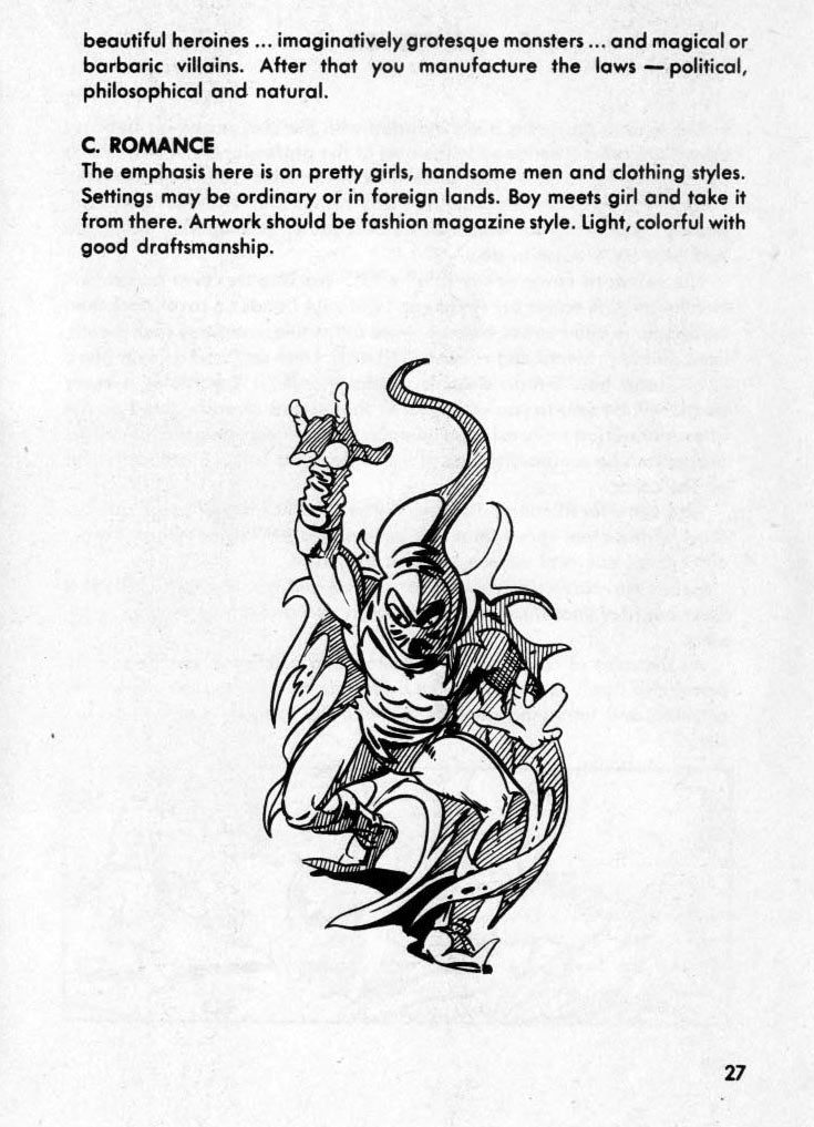 These descriptions of the various types of comic book stories are a bit funny in just how far they reduce the essentials of each of these genres down to a handful of buzz words. None of it is wrong per se, but this fails to take into account what might make a particular story or series in any of these areas memorable or stand out. As Charlton was interested primarily in producing almost cookie-cutter publications in order to keep their printing presses rolling, this perspective is a bit understandable–they weren’t looking for the work to be great, they were looking for widgets most often.