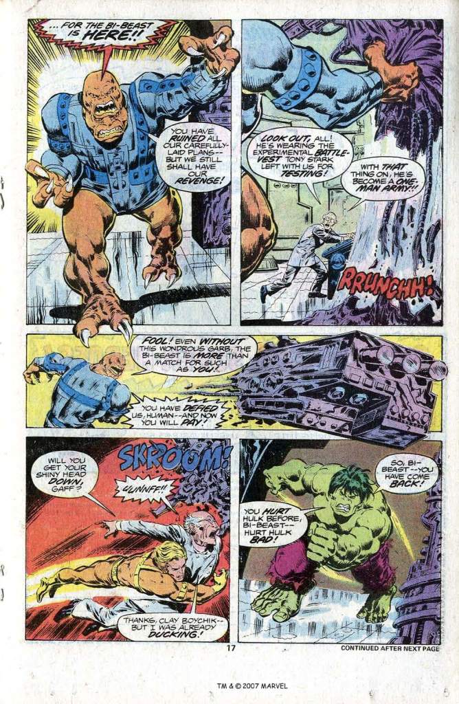 “By Jupiter!” Good thing Stark made that vest large enough to fit Bi-Beast! Sal really was a definitive Hulkster. Alfredo Alcala inked him on Hulk, too, correct? I liked Janson’s inks on Sal’s on Defenders. Rubinstein’s, too, but I think that was rare.