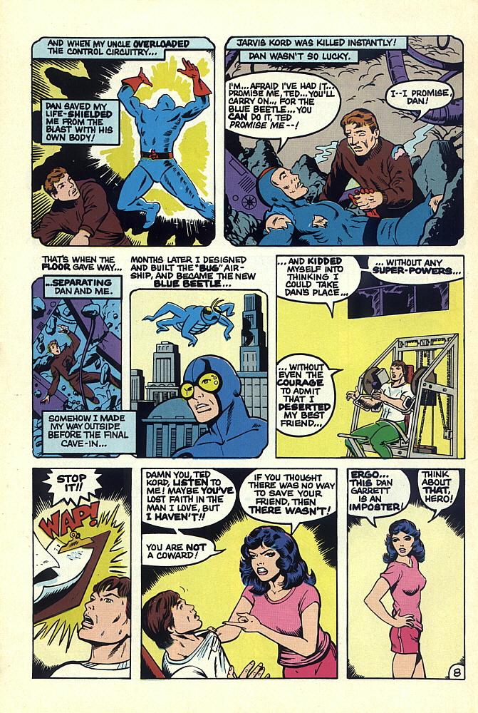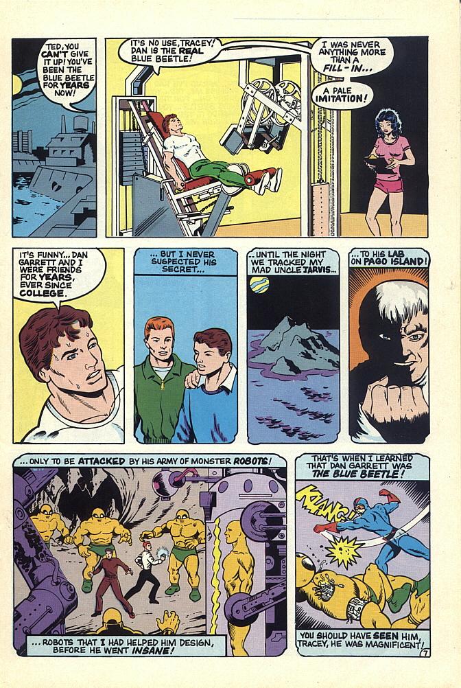 The story is a credible effort, better drawn than it is written. It’s relatively basic super hero fare, but it’s executed with a certain degree of panache. It’s difficult to work out who the story was intended for apart from readers who had followed the earlier Blue Beetle adventures a decade and a half earlier, since its events turn so solidly on those previous stories. But the basics are all explained relatively well along the way.