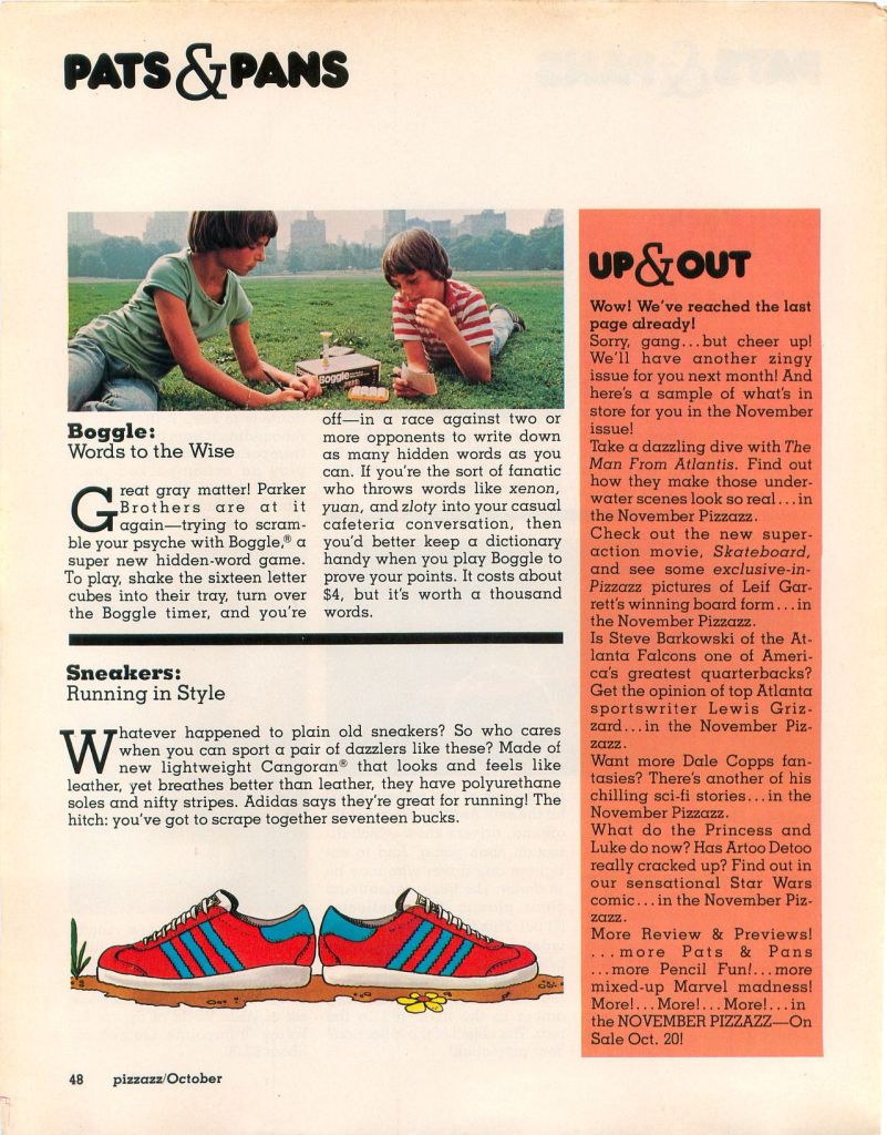 Continuing our survey of the first issue of PIZZAZZ Magazine, published regionally by Marvel in 1977 before eventually earning full national distribution. PIZZAZZ was intended as an answer to such kids’ magazines as DYNAMITE and was undertaken as a first step towards getting the company out of teh dying comic book business and moving into more lucrative children’s publishing. But things didn’t work out that way.
