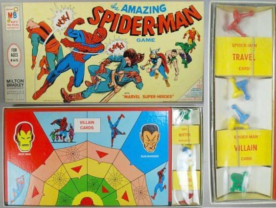 This AMAZING SPIDER-MAN game was released by Milton Bradley in 1966 and also co-stars the heroes featured in the Marvel Super-Heroes cartoon series. My guess is that the license for this game was made during that period when Spider-man was going to be one of the features spotlighted in that cartoon, before the decision was made to hold the wall-crawler back to star in an animated show of his own.