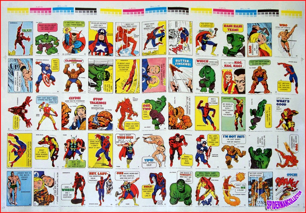 In 1966 Donruss released a series of Marvel Super Hero bubble gum cards. Like the later, well-remembered Topps sets from the 1970s, these cards pulled artwork from the Marvel books and added cute, funny captions and dialogue to them. Unlike the Topps set, though, these cards weren’t stickers.