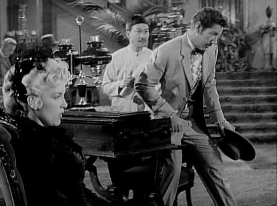 The episode opens along familiar lines, with Paladin’s gaze caught by a pretty newcomer to the lobby of the Hotel Carlton. But before he can make his instroductions, Hey Boy arrives with a special delivery letter for him. It’s from E.J. Randolph, the president of a bank in Colton, Wyoming where Paladin had recently brought a bank robber to ground. The letter indicates that Paladin left the job unfinished and that there is a large bonus payment in it for him if he will come to see Randolph and finish what he started. There’s also a clipping enclosed about Randolph offering a reward for information leading to the recovery of the money stolen from the Colton Bank. Paladin is a bit confused by this, but he dutifully rides out, leaving the pleasures of the woman’s company for another occasion.