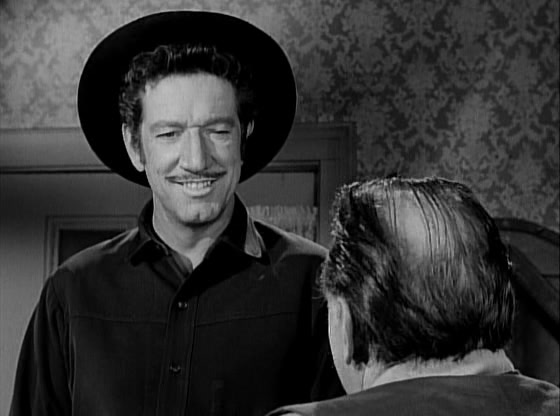 One of the requirements of a show that ran for as many episodes as did HAVE GUN – WILL TRAVEL (225 in total) was a pressing need to find new stories to tell within the constraints of the narrative set-up of the program. Like many series of its era, HAVE GUN was rigidly constructed. A viewer knew that each episode was likely to open with Paladin at his home base at the Hotel Carlton, where he’d engage in some banter with Hey Boy (or, in season four, Hey Girl) before being presented with a problem calling for his particular skills. That problem would form the basis for the rest of the adventure. And yet, even early on, the writers and producers of HAVE GUN were looking for ways that they could stretch wat was possible on their program. The style and tone of any given episode might be more overtly comedic or downright brutal. This one falls square in the middle.
