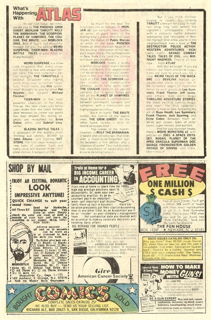 ATLAS also ran their own version of the Marvel Bullpen Bulletins page, ostensibly written by Larry Lieber. I have no idea whether he actually wrote this Stan-style half-page set of plus for other ATLAS releases–but he might have. That said, it could just as easily have ben somebody else.