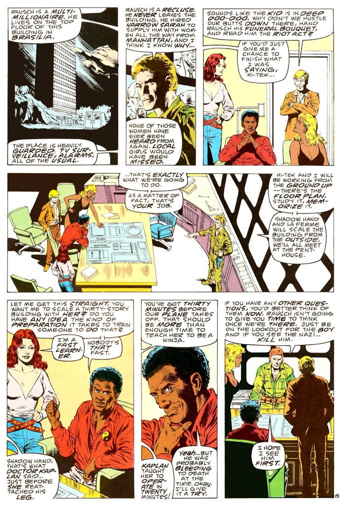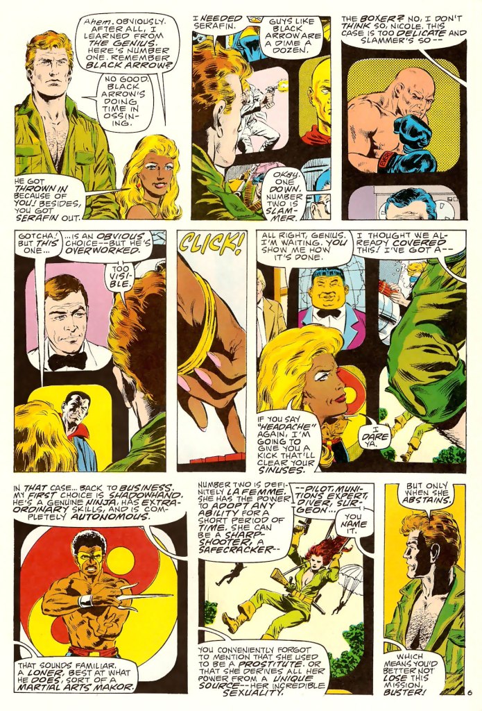 The initial reason why DAve paid exorbitant prices was because some person whom he met promised him a deal with the PXs. Dave mentioned he could not afford doing Captain Action so he ended up doing Code Name: Danger after I was let go from the company. (Captain Action Actions and his Agents for Hire was the working title.) One reason I was let go because I was not a Dave Singer yes man, and showed him up subtly in front of Murphy Anderson as well as finding some of his ideas too corny and stupid for the Wally Wood THUNDER Agents book. The inconsistency of the stories in Wally Wood’s THUNDER Agents 1 bore that out with the inconsistency of Raven in the solo story and the team adventure. Raven in the solo story was a combo of Dirty Harry and James Bond while in the team he was overly superstitious. I admit being very naive at the time. Dave Singer’s writing in subsequent issues echoed the worst versions of what John Carbonaro did. Both Carbonaro and Singer pretended to be plotters or writers and both fell very short. I was a novice editor at the time and fell short, too. I was editor of Wally Wood’s THUNDER Agents 1, and these are my recollections. Nasty and bitter experience among a few in the industry for me, most of the time due to me not knowing better. Singer focused more on marketing his product with a lot of flash than solid storytelling even though he hired top talent. (I still recall when Dave Cockrum put a bare ass on a Futurians book as an aside to Dave Singer.) I am not sure that if Carbonaro and Singer did both do the project as partners it would have survived considering all the other solid titles produced in the 1980s. Much like Rich Buckler’s Mighty Crusaders, it was a throwback to simpler stories of the 1960s.