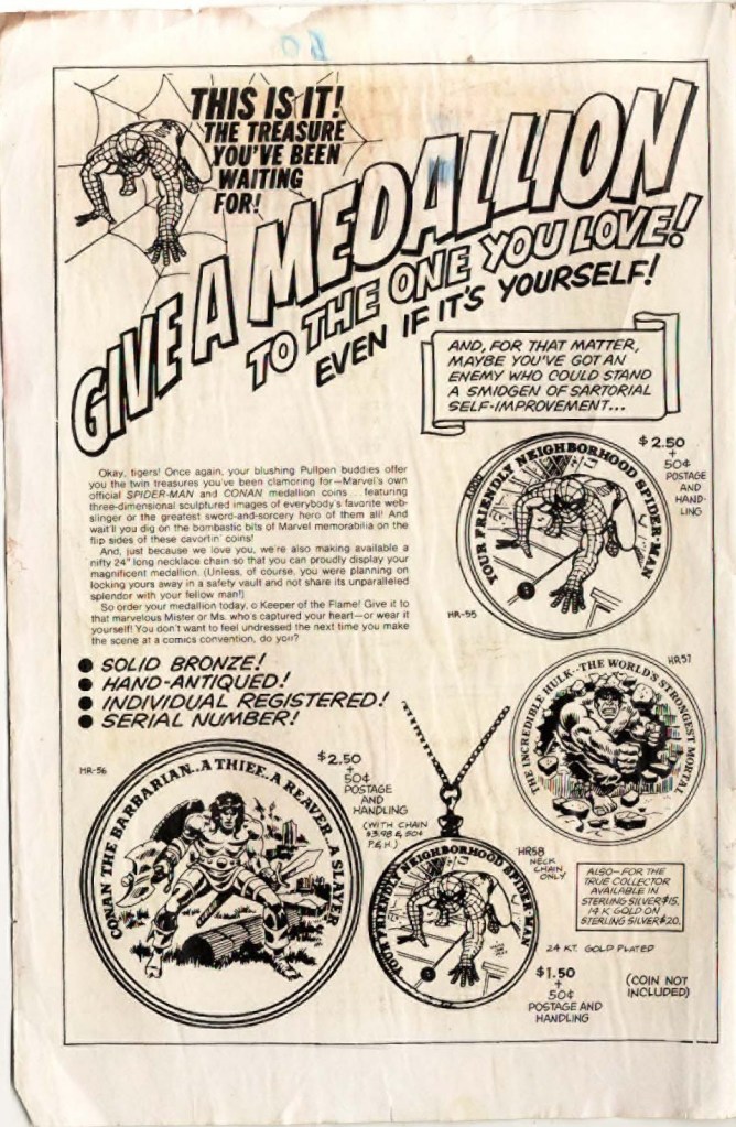 SUPERHERO MERCHANDISE was a mail order business run by Ivan Snyder that featured, as the name implies, super hero merchandise of all kinds. Snyder operated out of a storefront in New Jersey, which eventually transformed into the first of a series of HEROES WORLD comic book and merchandise stores in the late 1970s. Snyder had been involved in Marvel’s subscription business before striking out on his own, so he had relationships with a number of players at the Big Two. So this catalog was produced for him by moonlighting members of Marvel’s staff as well as a bunch of freelance artists. Later installments would be shipped out by Snyder to Joe Kubert’s school, which wasn’t far from the hub of Snyder’s operation. Once you were on SUPERHERO MERCHANDISE’s mailing list, it was impossible to get off, and copies of these catalogs showed up in your mailbox with frightening regularity. They were printed as comic books, on the same presses, and they promised all sorts of junky wonders to kids of the 1970s. So here’s the first catalog, with its vintage merchandise and vintage prices, which was released in 1976.