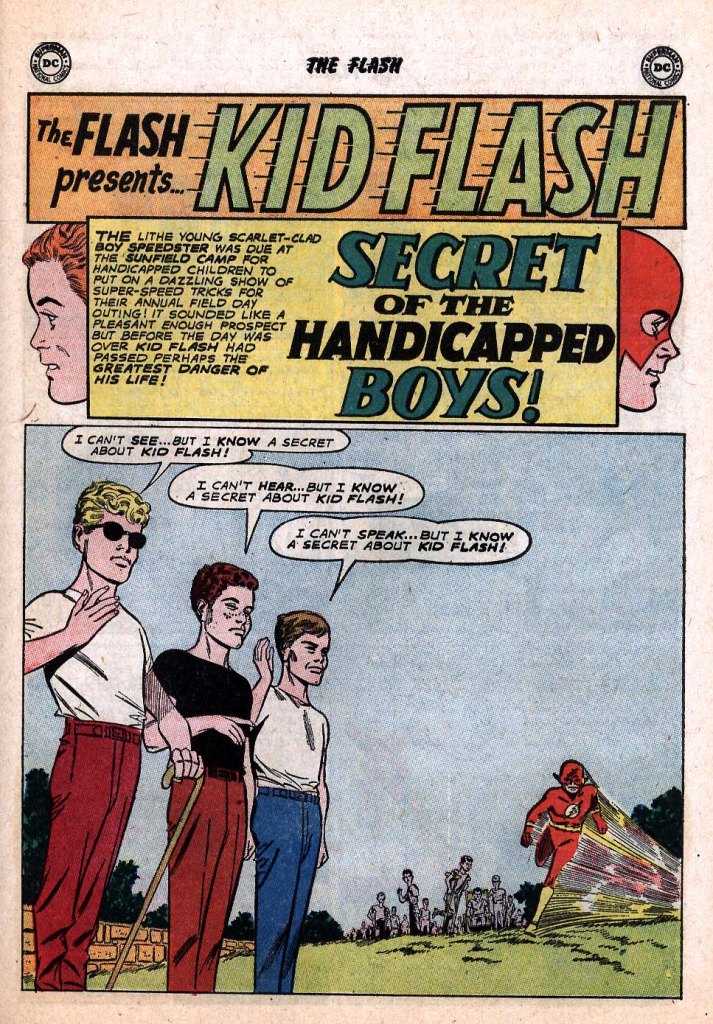 Like the lead story, this backup tale was the work of writer John Broome and artists Carmine Infantino and Joe Giella. The three of them were the backbone of the FLASH creative team, though other writers and inkers would occasionally sub in. In this tale, Kid Flash thinks back on a visit he made to a Boys’ Camp that catered to handicapped children, and how three of them individually were able to work out his true identity as Wally West despite their limitations. As a way of signifying their promise not to reveal what they have figured out, the three boys send Wally a small statue of the three monkeys: see no evil, hear no evil, speak no evil. There aren’t really any great stakes to speak of apart from the potential exposure of Kid Flash’s real name, but he manages to pull off a number of high-speed feats in the course of the story, and it’s all highly entertaining.