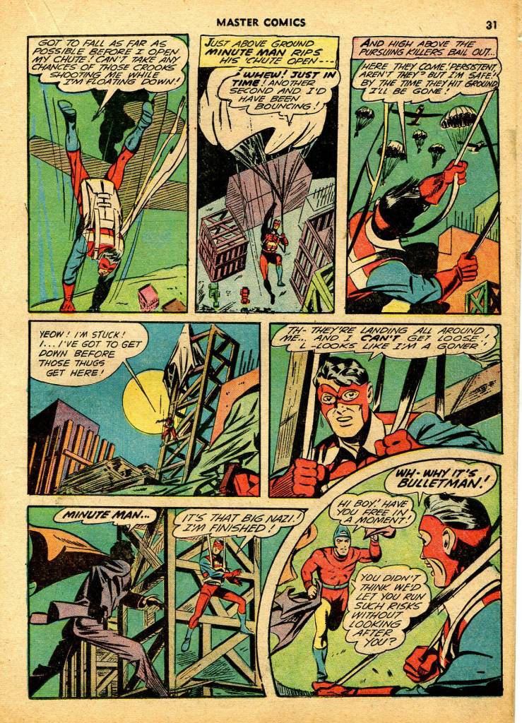 And the heroes have a ringer in the form of Bulletman, who posed as a Nazi villain to help keep Minute Man out of harm’s way. Doesn’t seem fair, really, but those contestants are killers, after all.