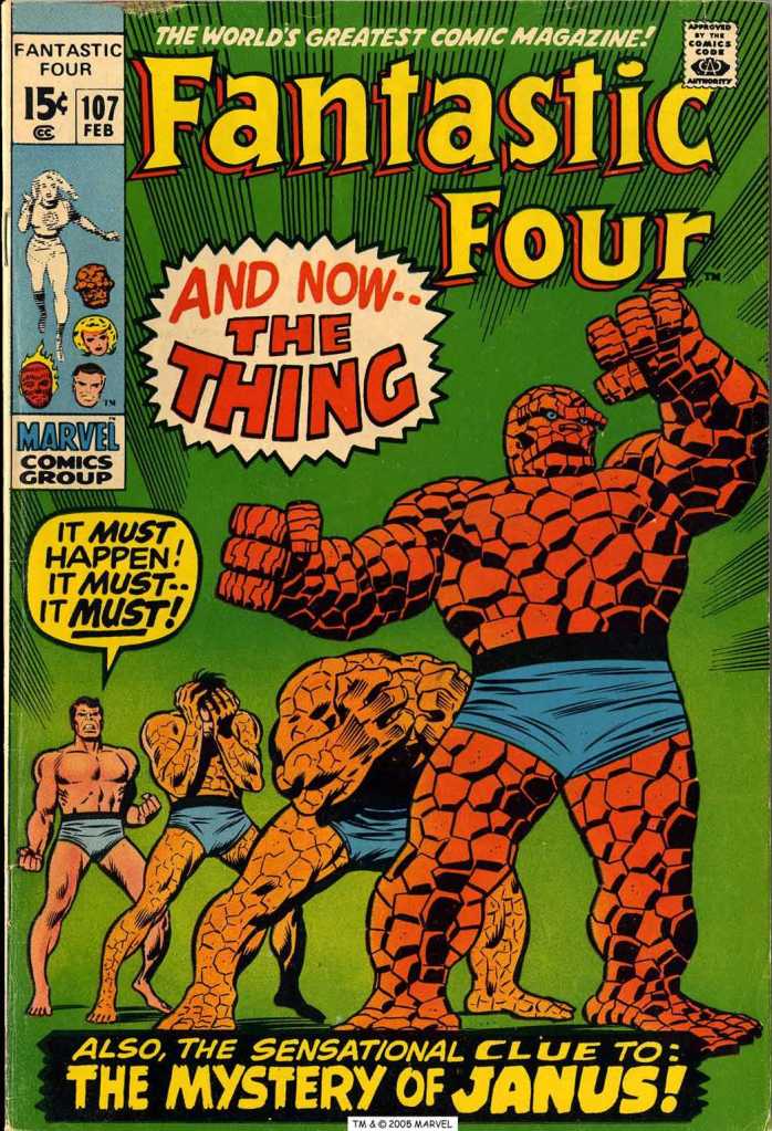 By 1970, the year I turned 8, I already held the Fantastic Four as my favorite comic and among my original comics collection I had issues 101-106. Then, in early 1971, my dad (in the Navy at the time), was transferred from Long Beach, CA, to Salt Lake City (for recruiting duty) and in the move nearly all my old comics were thrown out. And at any rate, for whatever reason, I got very few comics between late 1970 and May 1972. The next month I got FF #126 (Thomas’ 1st). The next year, my 5th grade teacher happened to have FF #107 on his desk, and I asked about it and he gave it to me (and I still have it!), so I finally got to read the conclusion to the cliffhanger I’d read in106, although I’d lost that particular comic (but got the reprinted version in Marvel’s Greatest Comics years later).