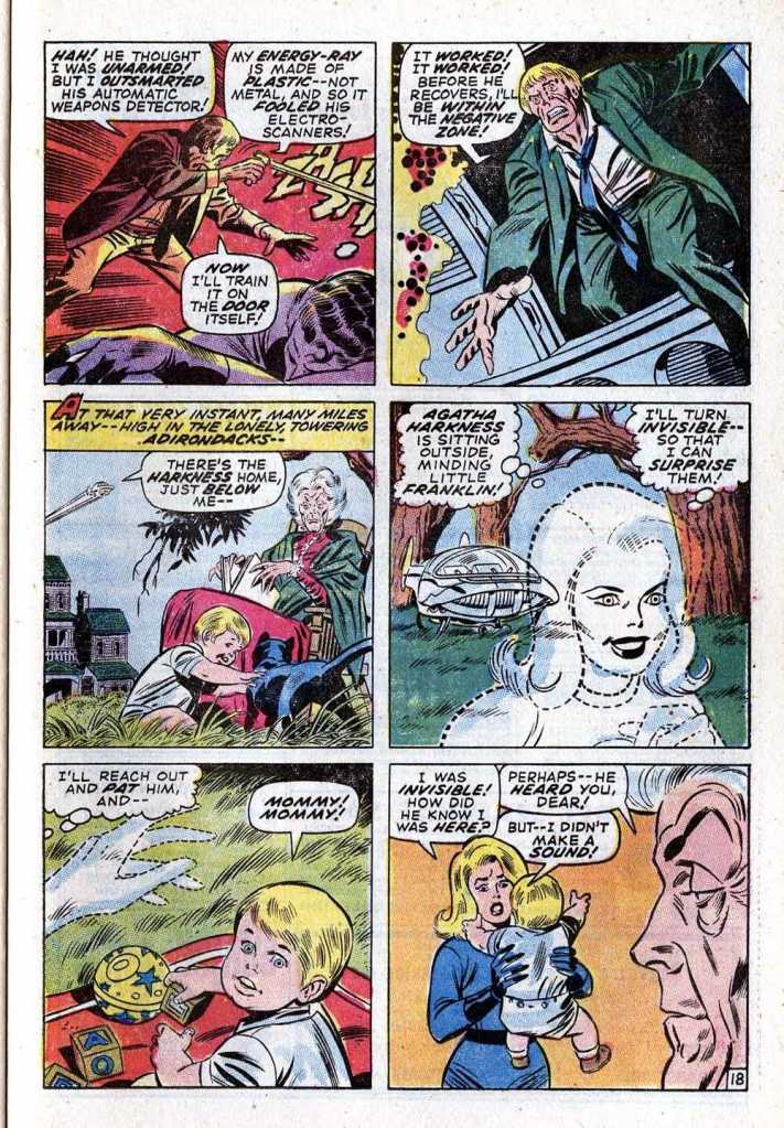 Reed to Johnny: “Shut up, kid!” Reed to Ben: “But I never expected you to be a QUITTER!” Dang, Stan. Reminds me of Shooter having Reed goad Bruce Bannner as the Hulk while Hulk was holding up the mountain dropped on them in “Secret Wars”, knowing “the madder Hulk gets, the stronger Hulk gets”.
