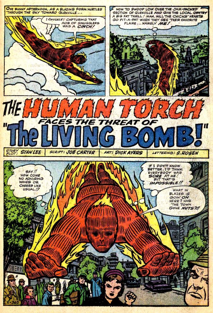 The Torch’s gambit succeeds, but he himself is injured by the detonation and the radiation. Mister Fantastic catches his lifeless form as it plummets to the Earth, and he’s hopeful that a new ray he’s developed can restore Johnny to health. As people around the city wait for word on the Torch’s prognosis, Braddock broadcasts a change of heart about the Torch. And, of course, Johnny comes through with flying colors–so much so that he’s out of the hospital in the space of a panel or two. And that’s it! The story isn’t at all concerned with anything approximating realism, and all of its emotional content is canned. It’s easy to see why Siegel wasn’t the answer to Lee’s need for additional scripters. The Marvel books were attempting to pitch their material slightly older than the Weisinger titles, so while Siegel was a perfect fit for Superman, he never quite clicked with the Marvel books.