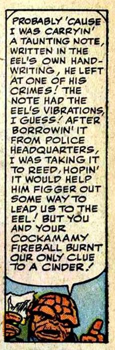 For anybody wondering why I suspect that this story was done full script, this insane panel provides a clue. There’s no reason why Ayers would have drawn a tiny Thing head in an otherwise empty panel, not is Siegel likely to have written the Gettysburg Address here were he simply working from the artwork.