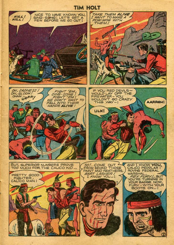 That strip had been alternately called Rex Fury and the Calico Kid, and it had been running as a back-up feature in TOM HOLT for a number of issues. But there really wasn’t much of anything to distinguish it from any other generic cowboy strip, and so it failed to garner any interest. Having already tried to create a stir by promoting Rex Fury to the Calico Kid, the decision was made to do something a bit more permanent with him–kill him off.