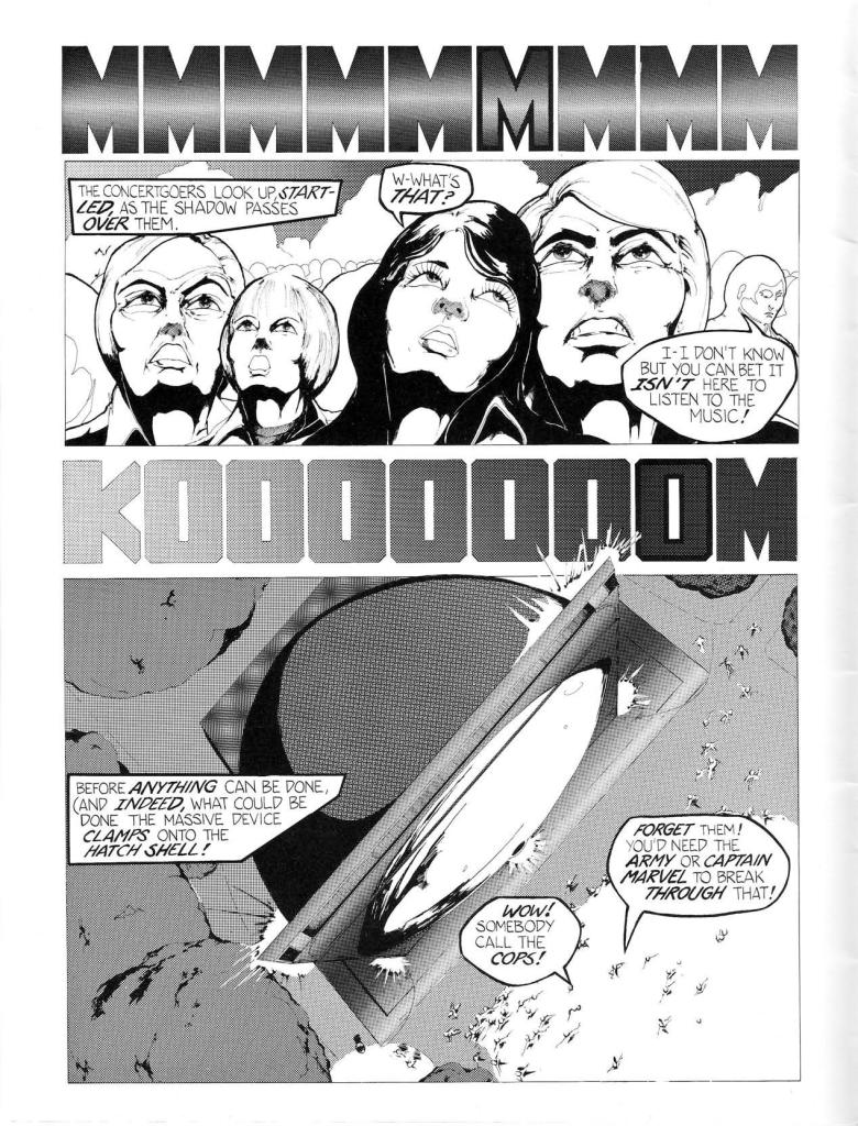 Images of the comic weren’t quite “flashed” on screen with musical accompaniment — the whole comic was projected during intermission, with narration, dialogue and FX done by “The Hour of the Wolf Matinee,” a local radio ensemble headed up by Robert Desiderio, who went on to a lengthy TV career.